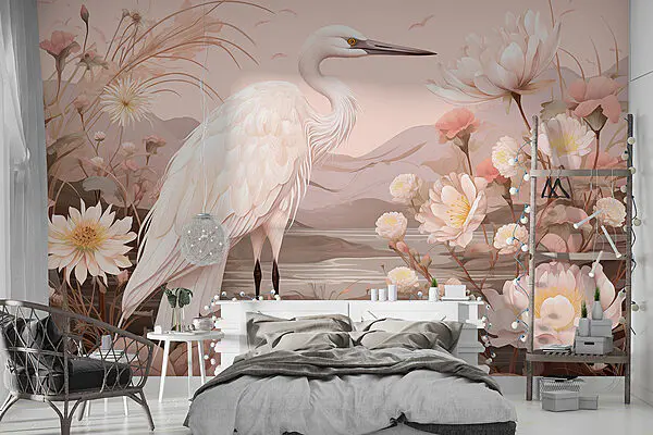 5144.17 Ft3086.51 FtFotótapéta Fehér madár áll a sziklákon virágokkal körülvéve