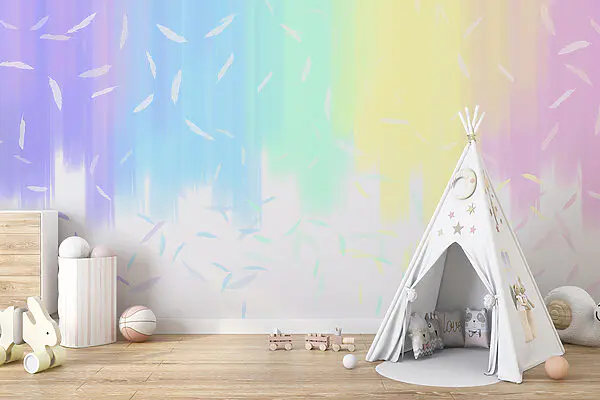 5144.17 Ft3086.51 FtFotótapéta Szivárvány színű háttér fehér tollakkal, amelyek hullnak
