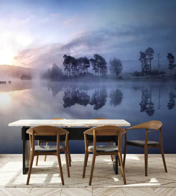 5144.17 Ft3086.51 FtFotótapéta Ködös tó fákkal és kék éggel