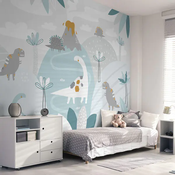 5144.17 Ft3086.51 FtFotótapéta Egy rajzfilm dinoszaurusz vulkánnal és növényekkel