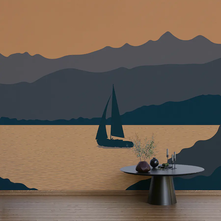 Fotótapéta Vitorlás a vízen, a háttérben hegyekkel