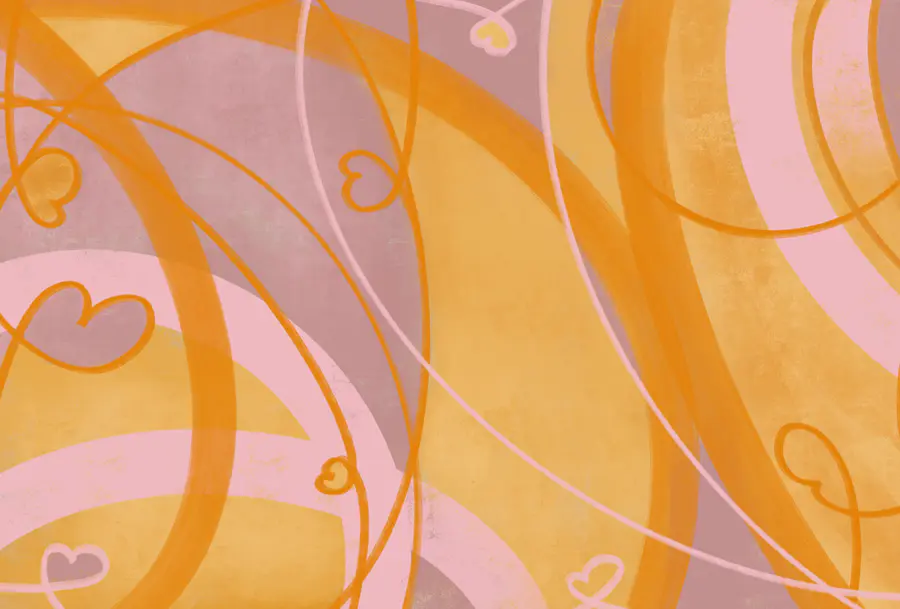 Fotótapéta Sárga és rózsaszín örvények és szívek