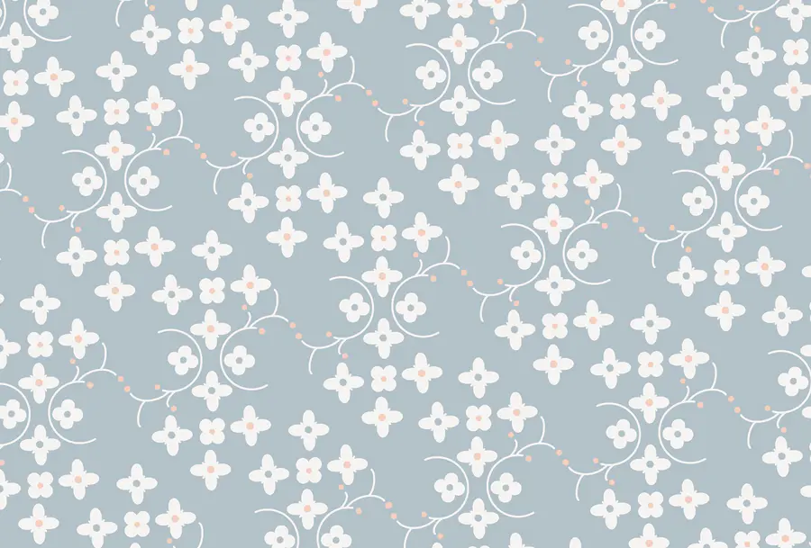 Fotótapéta Fehér virágok és rózsaszín pöttyök mintája kék alapon