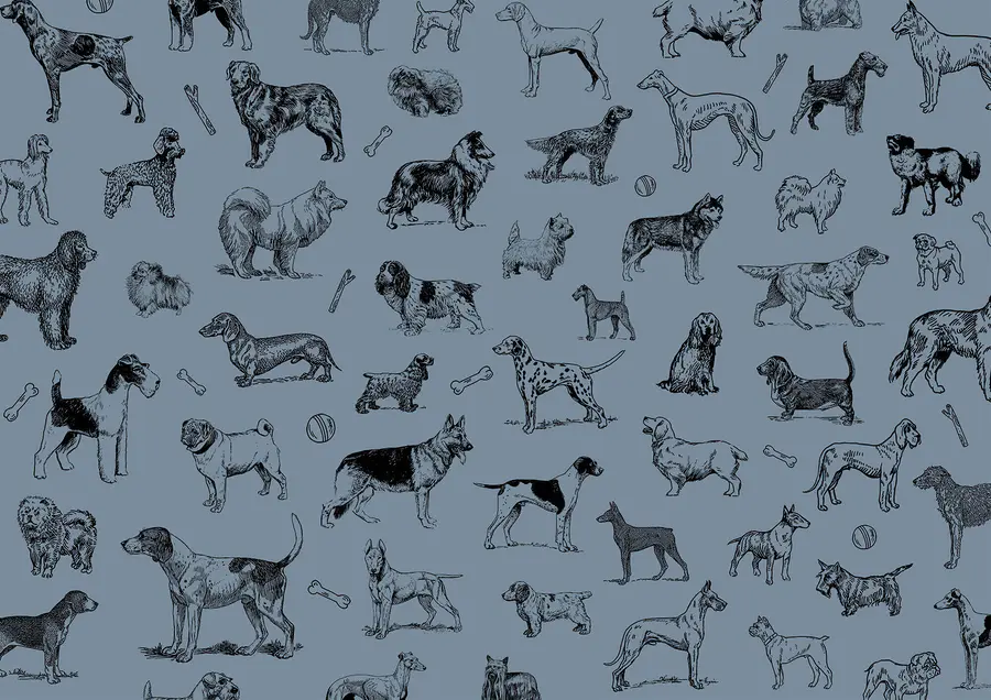 Fotótapéta Kutyák csoportja kék háttéren