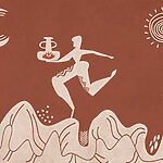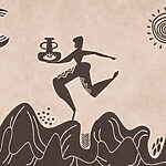 Fotótapéta Rajz egy emberről, aki egy edényt és egy edényt tart a kezében egy hegyen