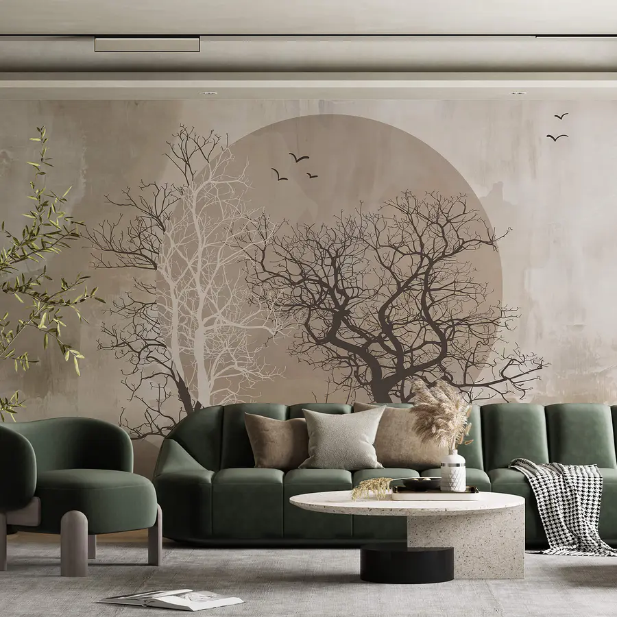 Fotótapéta Fák és a nap festménye