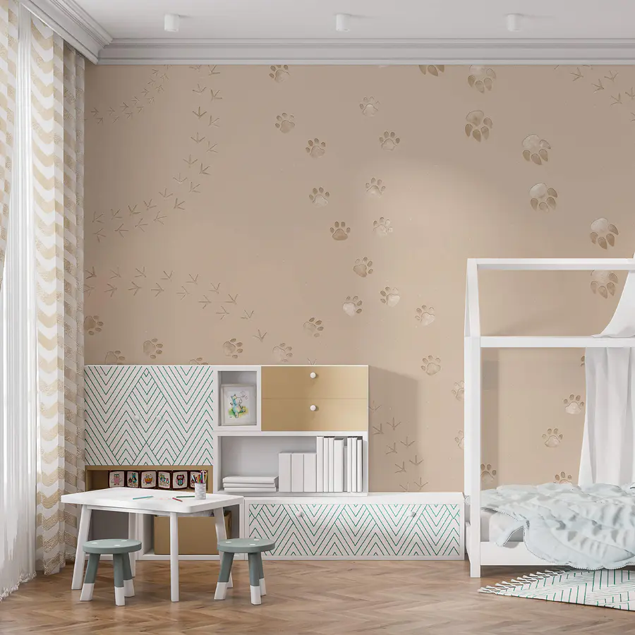 Fotótapéta Mancsnyomok és madarak mintázata