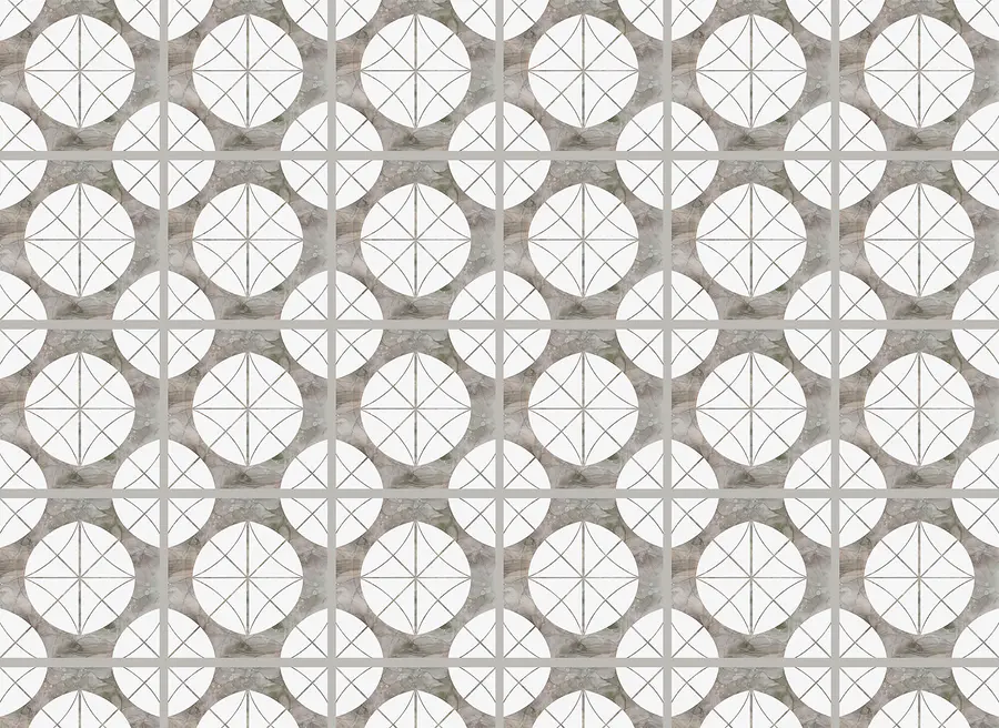 Transforming a space can feel like a big deal, but this mural makes it easy. Picture a cozy nook or a lively living area dressed up in a playful pattern of white circles and soft grey squares. It’s got that effortless vibe that adds depth without overwhelming the senses—like inviting a minimalist friend to decorate. Imagine sipping coffee, relaxing, and feeling a sense of calm wash over you as those geometric shapes create rhythm on the wall. It's fresh, versatile, and just perfect for sparking conversations or daydreams. Throw on some plants, maybe a colorful rug, and voilà—instant charm!