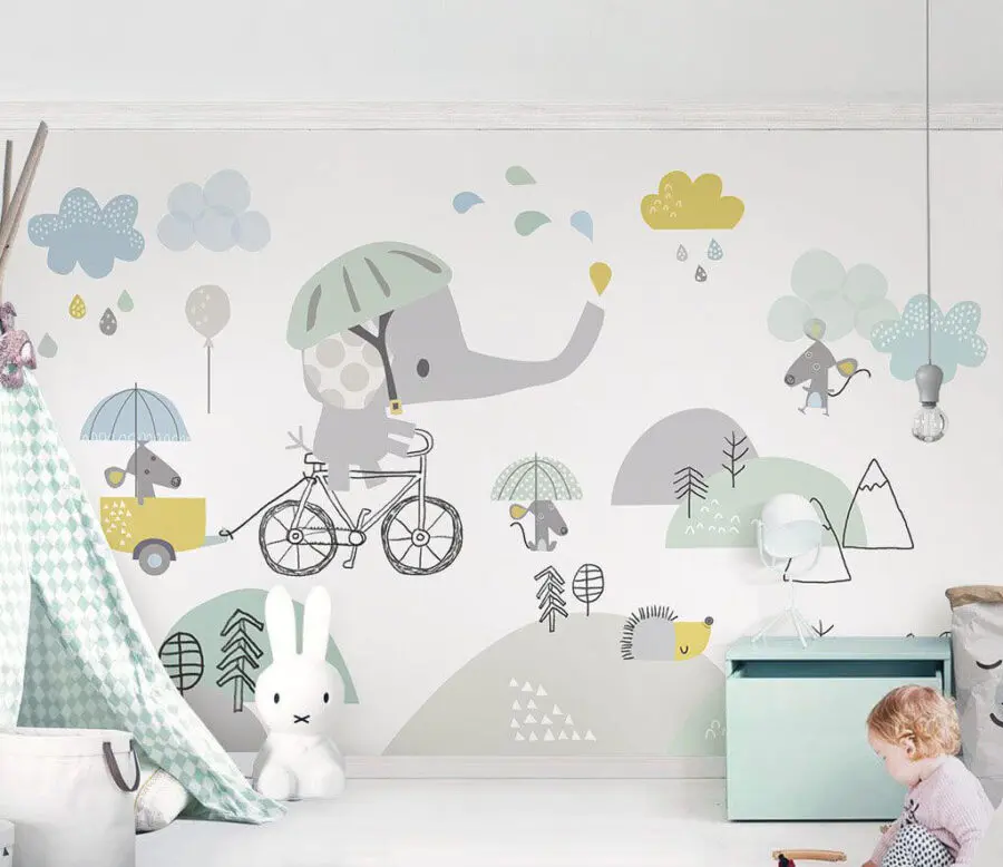 Fotótapéta Rajzfilm elefánt kerékpárral