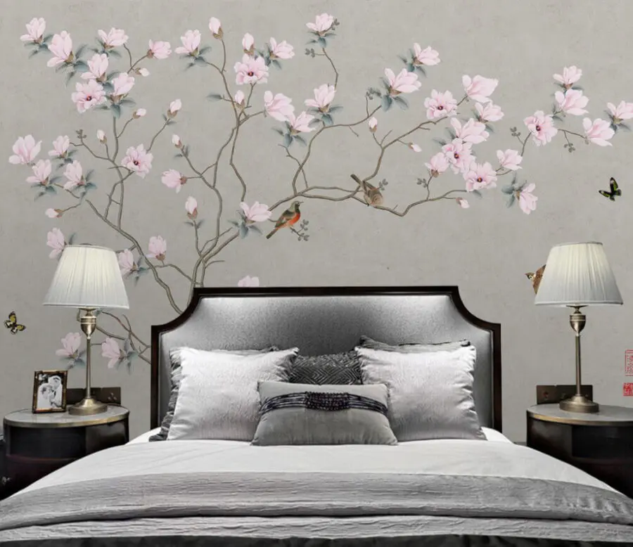 5331.23 Ft2932.18 FtFotótapéta Fa ág rózsaszín virágokkal és madarak repülnek