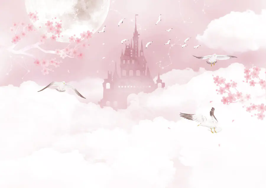 Fotótapéta Kastély az égen repülő madarakkal