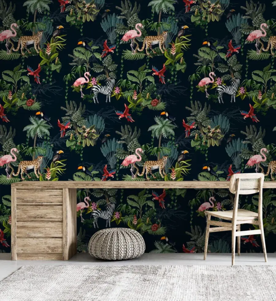 5331.23 Ft2932.18 FtFotótapéta Rózsaszín flamingók és egy madár az erdőben