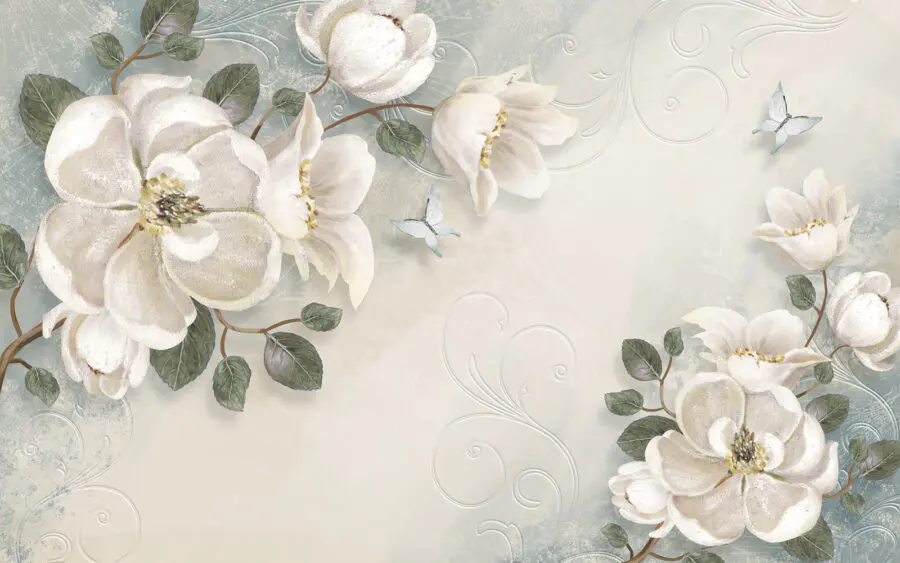 Fotótapéta Fehér virágok és levelek fehér háttéren