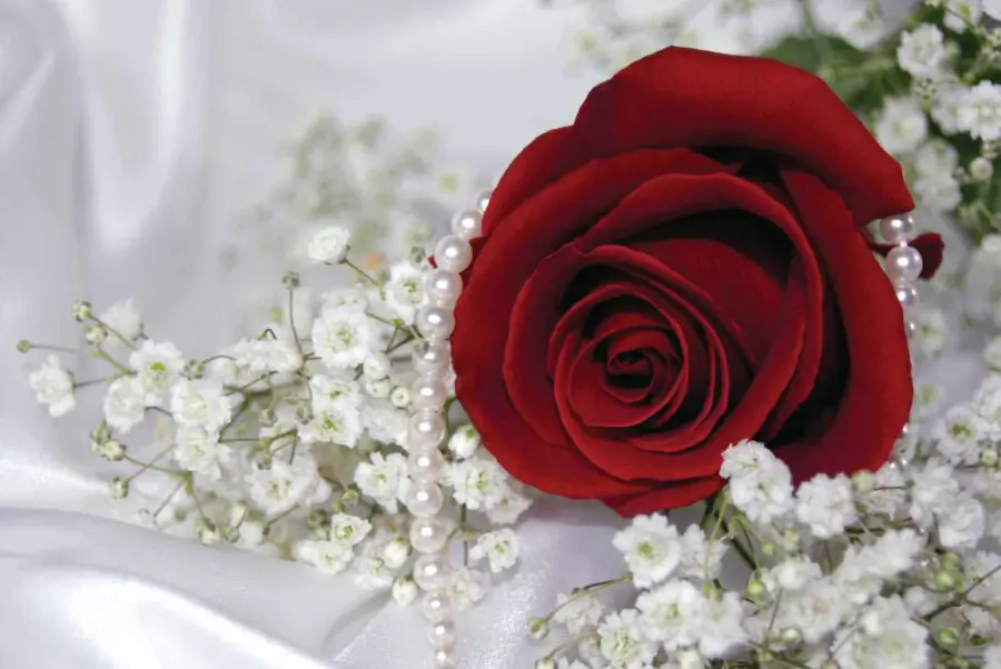 Fotótapéta Vörös rózsa és fehér virágok