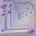Fotótapéta Tapéta lila rózsákkal és lépcsőházzal