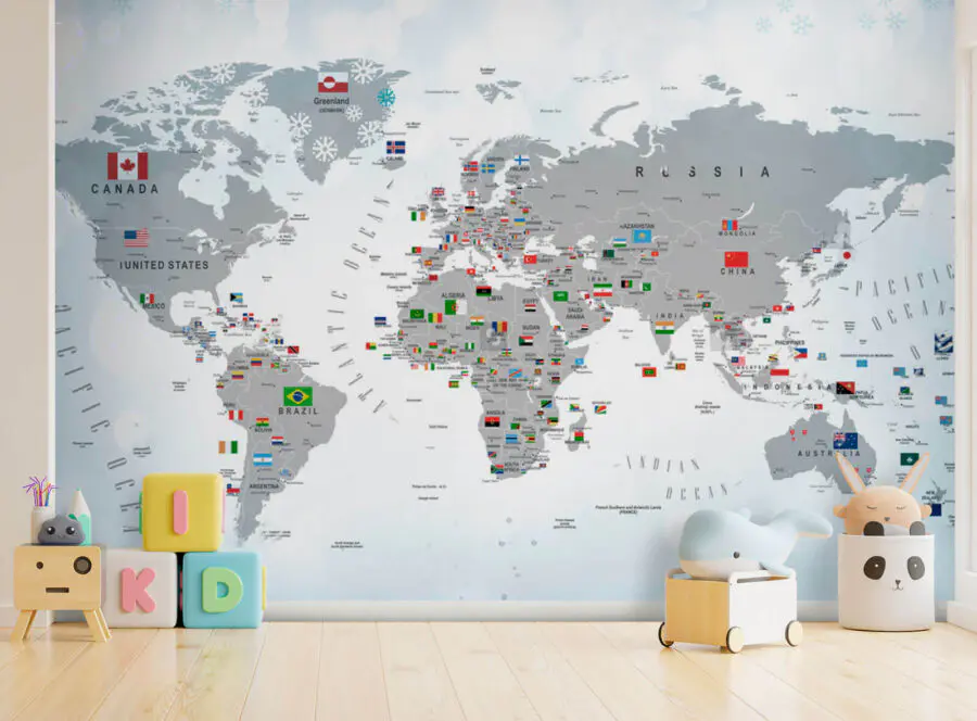 Fotótapéta A világ térképe zászlókkal