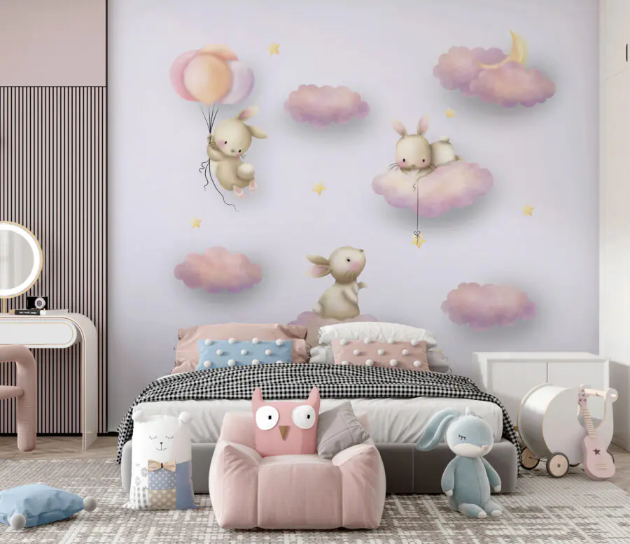 5331.23 Ft2932.18 FtFotótapéta Rózsaszín felhők csoportja és egy nyuszi, aki lufit tart a kezében