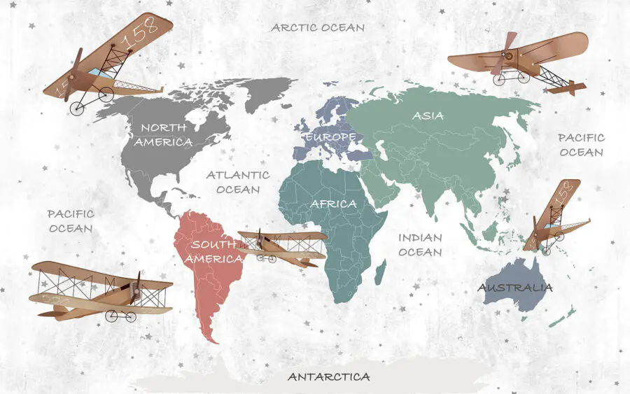 5331.23 Ft2932.18 FtFotótapéta A világ térképe repülőgépekkel és hőlégballonokkal