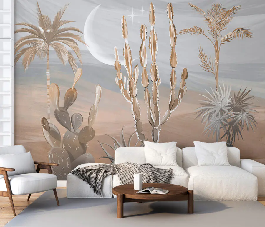 Fotótapéta Sivatagi táj kaktuszokkal és pálmafákkal