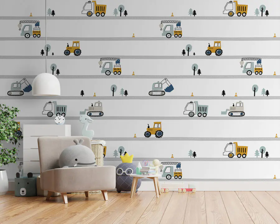 Fotótapéta Autók és fák mintázata