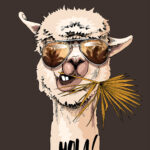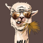 Fotótapéta Egy láma napszemüveget visel és levelet eszik