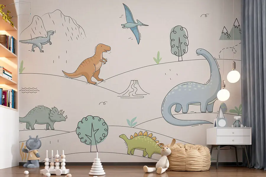Fotótapéta Dinoszauruszokat és hegyeket ábrázoló rajz