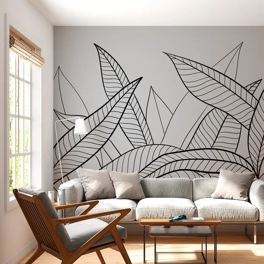 Fotótapéta Fekete-fehér rajz levelekről
