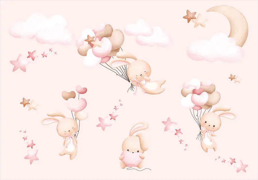 5144.17 Ft3086.51 FtFotótapéta Rózsaszín felhők csoportja és egy nyuszi, aki lufit tart a kezében