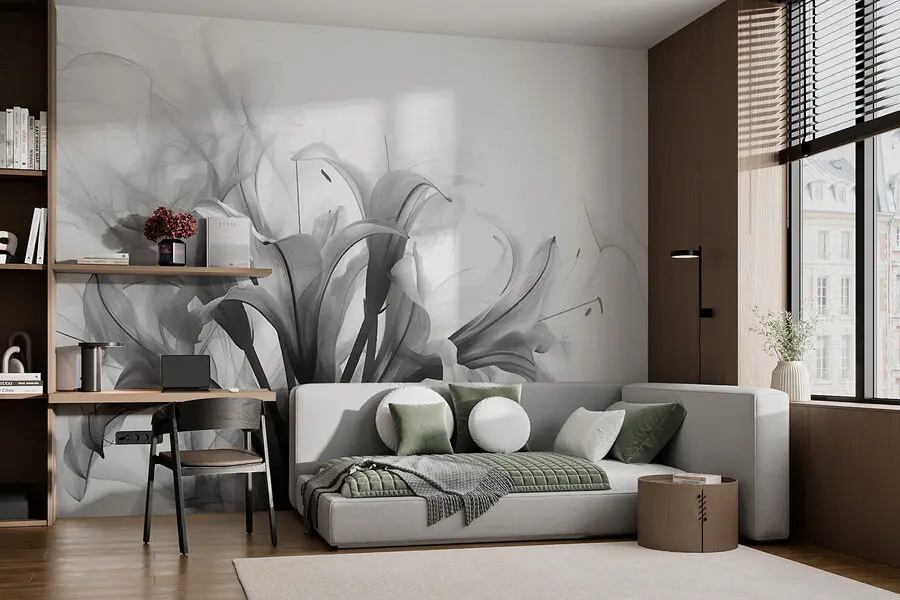 Képzeld el: egy esős délután, és te a kedvenc meleg italodat kortyolgatod, meghittségbe burkolózva, miközben ez a lenyűgöző fekete-fehér virágos falfestmény díszíti a nappalid falát. Olyan, mintha egy klasszikus filmjelenetbe lépnél - ahol a romantika találkozik az időtlen eleganciával, csak drámai zene nélkül. A virágok bonyolult részletei szinte elvarázsolt kertek történeteit suttogják (vagy talán csak a szép dolgok iránti szeretetedet). Tökéletes egy kis kifinomultság hozzáadásához, amely nem túlzás, de mégis azt üzeni: "Hé, ismerem a jó művészetet".