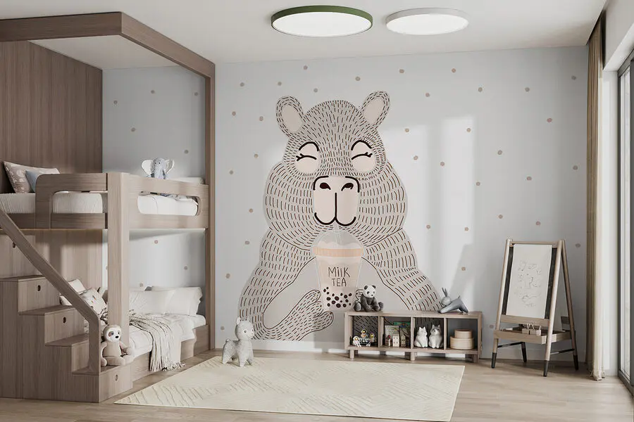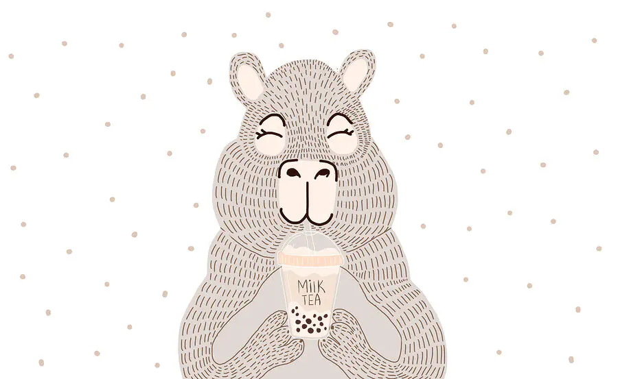Fotótapéta Karikatúra egy medve, kezében egy buborékos tea