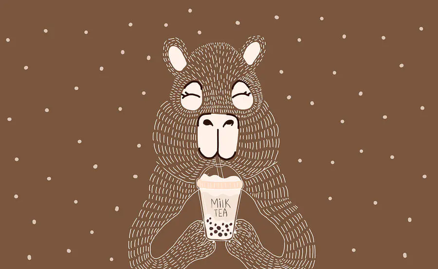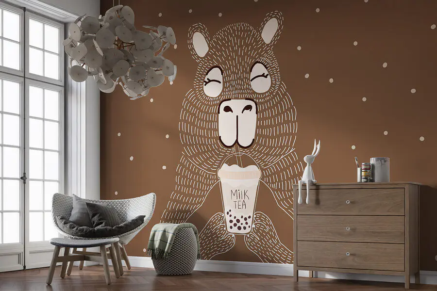 Fotótapéta Rajzfilm állat kezében egy csésze tejes tea
