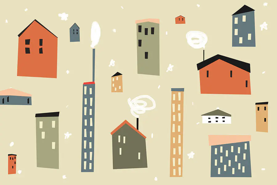 Fotótapéta Épületek csoportja, amelyekből füst jön ki