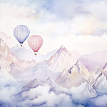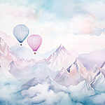 Fotótapéta Hőlégballonok csoportja az égen a hegyek felett