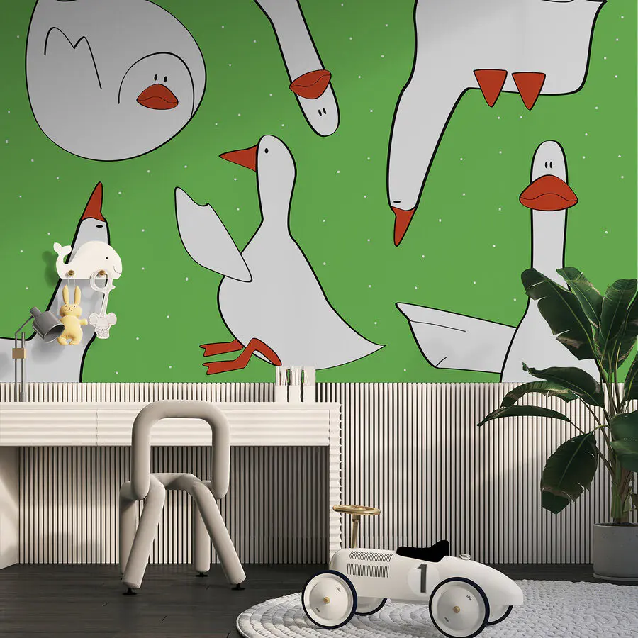 Persze! Képzelje el, hogy egy csöppnyi furcsa báj feldobja a nappaliját - ezek a fehér libák vidáman vonulnak a zöld háttéren, és pont a megfelelő szeszélyt adják hozzá. Olyan, mintha a falai úgy döntöttek volna, hogy partit rendeznek, és a libák kapták a főszerepet. Tökéletes választás a természet szerelmeseinek, vagy bárkinek, aki kuncog a tollas barátok látványán. Ez egy élénk módja annak, hogy egy kis szabadtéri vidámságot vigyen be a házba, nem gondolja? Vendégei minden alkalommal mosolyogni (vagy dudálni) fognak, amikor meglátják. Nagyszerű egy hangulatos konyhába vagy egy játékos családi térbe!