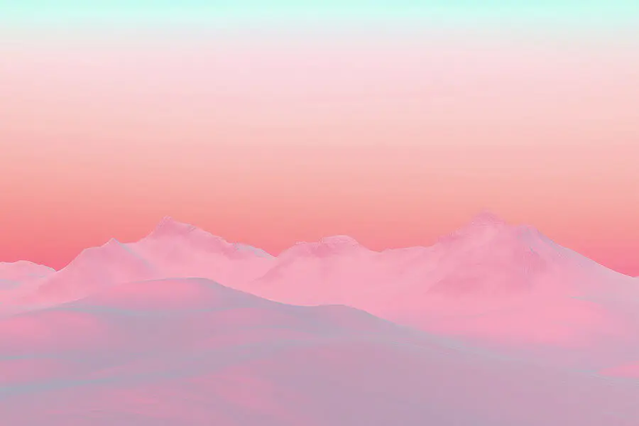 Fotótapéta Rózsaszín és kék ég egy havas hegyvonulat felett