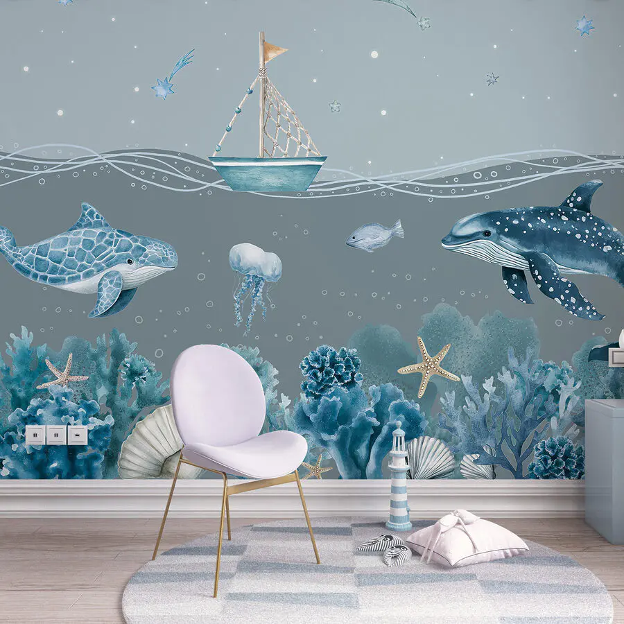 Fotótapéta Tengeri élet csónakkal és halakkal