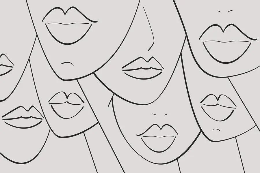 Fotótapéta Fekete-fehérrel rajzolt ajkakkal és ajkakkal rendelkező arcok csoportja
