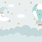 Fotótapéta Rajzfilm elefánt és hold egy léggömbben