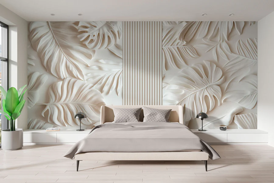 Fotótapéta Fehér fal levelekkel