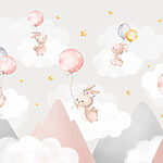 5414.92 Ft3248.95 FtFotótapéta Rózsaszín felhők csoportja és egy nyuszi, aki lufit tart a kezében