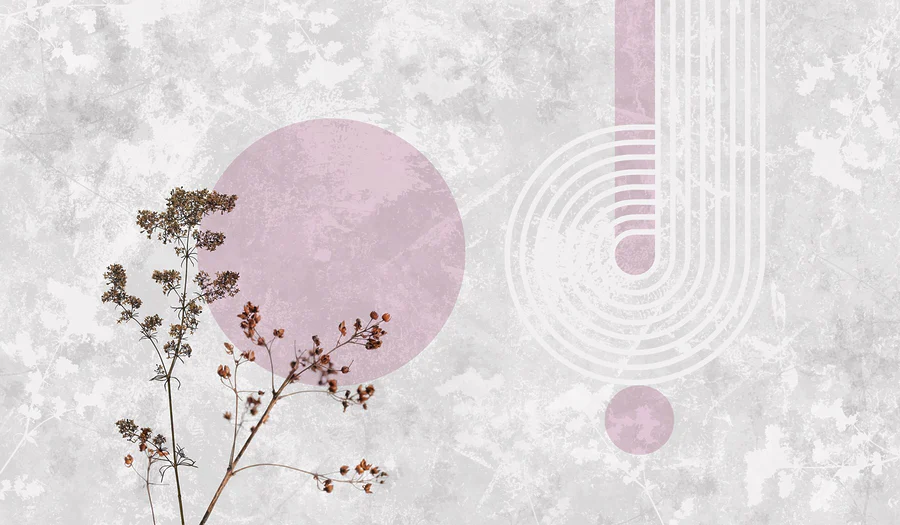 Fotótapéta Barna levelű és lila körökkel díszített növény