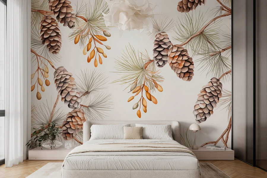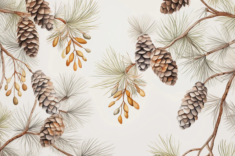 Fotótapéta Fenyőtobozok és tűlevelek mintázata