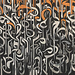 Fotótapéta Fekete-fehér művészet narancssárga és fehér vonalakkal