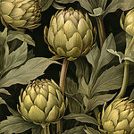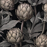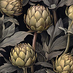 Fotótapéta Articsóka levelekkel és szárakkal fekete háttéren