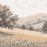 Képzelje el, hogy egy békés tájba léphet közvetlenül a faláról. Ez a szelíd dombokat és élénk fákat ábrázoló falfestmény nyugalmat varázsol minden térbe. Képzelje el, hogy egy egyszerű szobát hangulatos menedékké változtat, ahol a reggeli kávé olyan, mintha a természetben sétálna. A lágy színek nyugtató hangulatot keltenek, akár a szél suttogása. A barátok talán azon kapják magukat, hogy bámulják, és egy napsütötte kirándulásról álmodoznak. Akár egy nappaliban, akár egy csendes dolgozószobában, ez a falfestmény nemcsak díszít, hanem egy szelet nyugalmat is hoz a mindennapokba. Olyan, mintha kinyitna egy ablakot a szabadba, mínusz a pollenek!