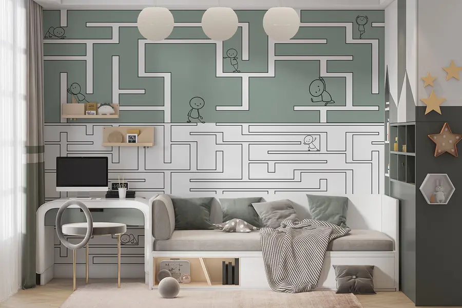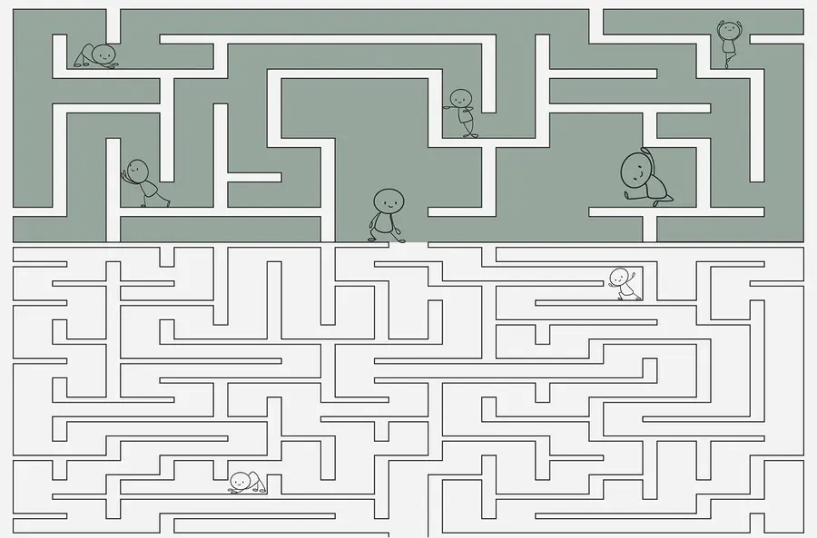 Fotótapéta Labirintus játék rajzfilm emberek sétálnak a labirintusban
