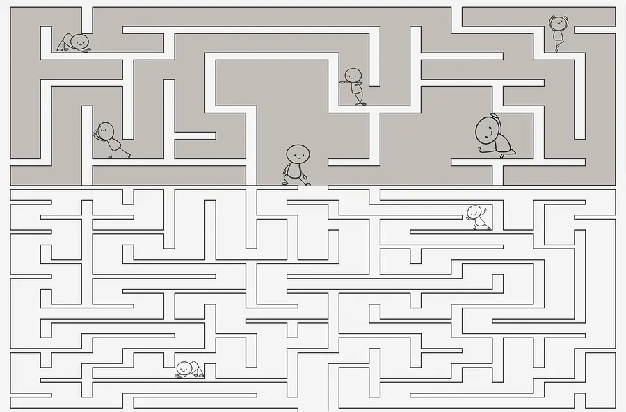 Fotótapéta Labirintus a földön sétáló emberekkel