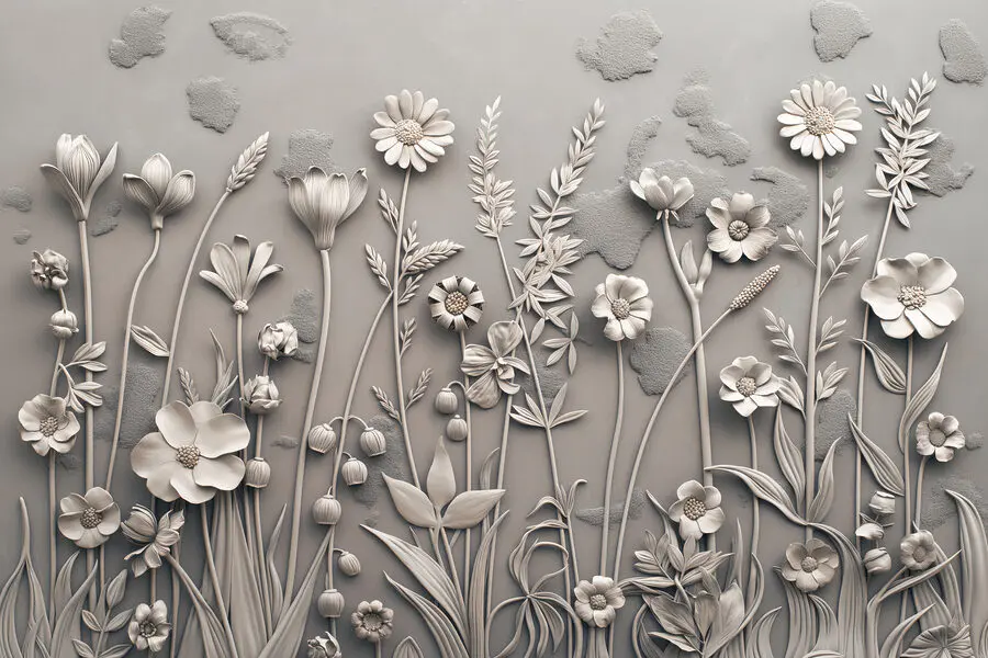 Fotótapéta Falfestmény virágokkal és növényekkel