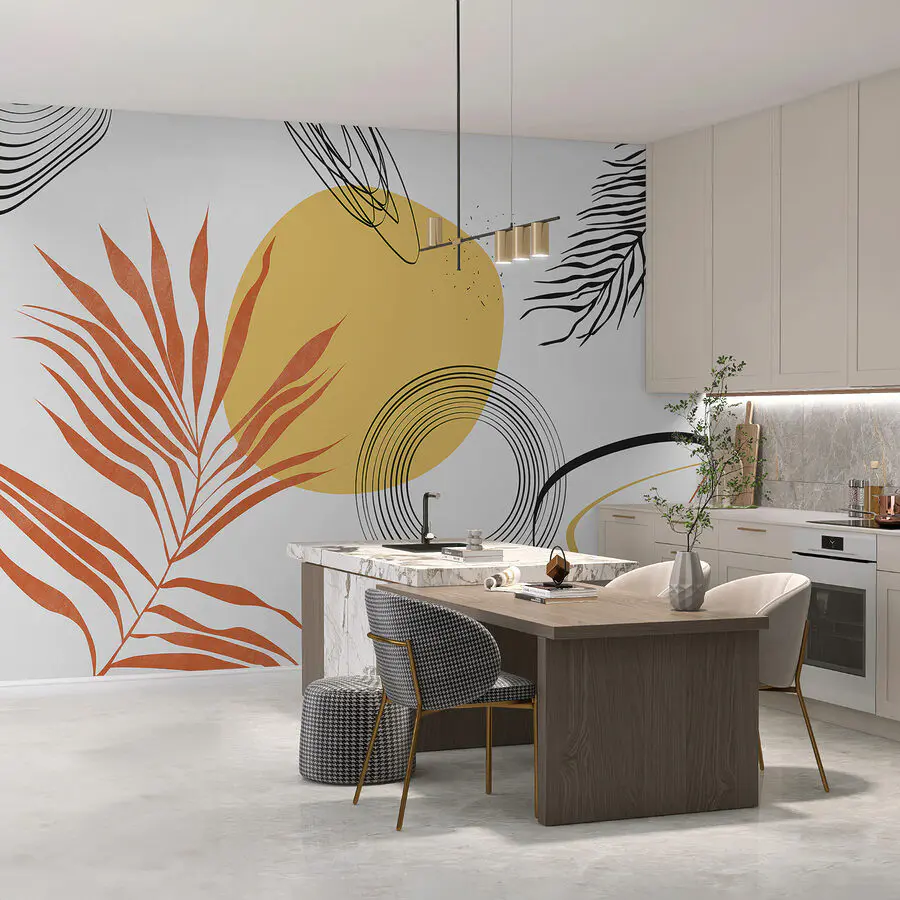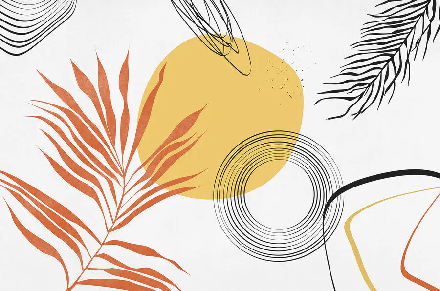 5331.23 Ft2932.18 FtFotótapéta Színes művészet fekete-fehér körökkel és levelekkel
