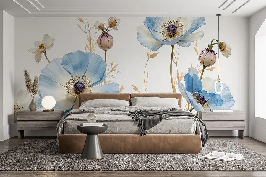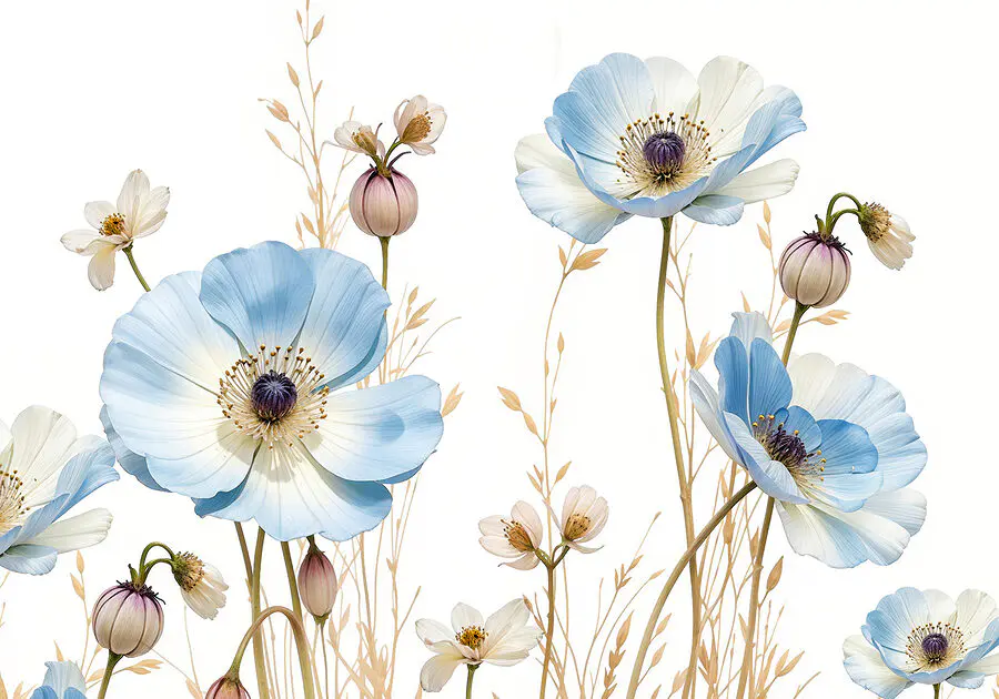 5144.17 Ft3086.51 FtFotótapéta Fehér virágok és kék levelek virágmintája
